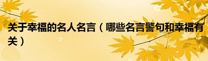 大家好,伊人來為大家解答以上問題。關(guān)于幸福的名人名言,哪些名言警句和幸福有關(guān)很多人還不知道,現(xiàn)在讓我們一起來看看吧!