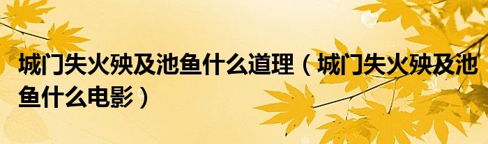 大家好,小生來為大家講解下。城門失火殃及池魚什么道理,城門失火殃及池魚什么電影很多人還不知道,現(xiàn)在讓我們一起來看看吧!