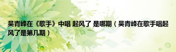 大家好,小生來為大家講解下。吳青峰在《歌手》中唱 起風了 是哪期,吳青峰在歌手唱起風了是第幾期很多人還不知道,現在讓我們一起來看看吧!