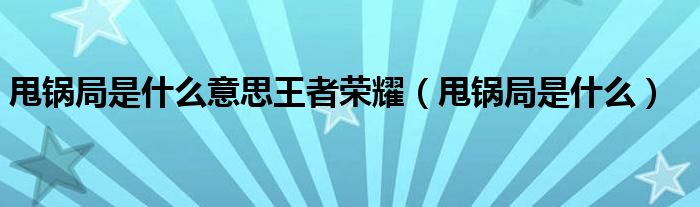 大家好,小生來為大家講解下。甩鍋局是什么意思王者榮耀,甩鍋局是什么很多人還不知道,現(xiàn)在讓我們一起來看看吧!