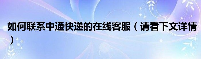 大家好,伊人來為大家解答以上問題。如何聯系中通快遞的在線客服,請看下文詳情很多人還不知道,現在讓我們一起來看看吧!