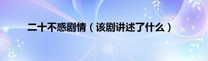 大家好,伊人來為大家解答以上問題。二十不惑劇情,該劇講述了什么很多人還不知道,現(xiàn)在讓我們一起來看看吧!
