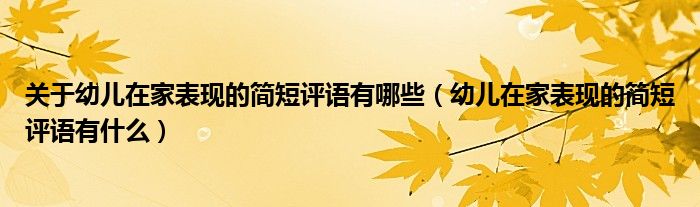 大家好,伊人來為大家解答以上問題。關(guān)于幼兒在家表現(xiàn)的簡短評語有哪些,幼兒在家表現(xiàn)的簡短評語有什么很多人還不知道,現(xiàn)在讓我們一起來看看吧!