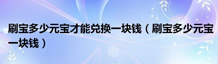 大家好,小生來為大家講解下。刷寶多少元寶才能兌換一塊錢,刷寶多少元寶一塊錢很多人還不知道,現在讓我們一起來看看吧!