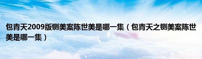 大家好,小生來為大家講解下。包青天2009版鍘美案陳世美是哪一集,包青天之鍘美案陳世美是哪一集很多人還不知道,現(xiàn)在讓我們一起來看看吧!