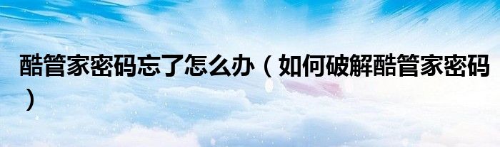 大家好,小生來(lái)為大家講解下。酷管家密碼忘了怎么辦,如何破解酷管家密碼很多人還不知道,現(xiàn)在讓我們一起來(lái)看看吧!