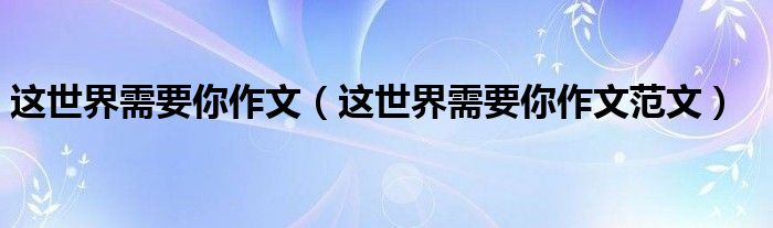 這個世界需要你,無論你是誰;這個世界需要你,無論你在哪里;這個世界需要你,無論你是貧窮還是富有。