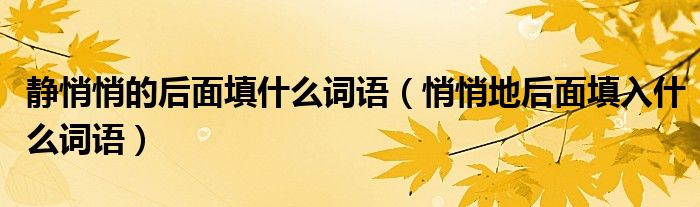 大家好,小生來為大家講解下。靜悄悄的后面填什么詞語,悄悄地后面填入什么詞語很多人還不知道,現(xiàn)在讓我們一起來看看吧!