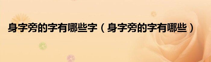 大家好,小生來為大家講解下。身字旁的字有哪些字,身字旁的字有哪些很多人還不知道,現(xiàn)在讓我們一起來看看吧!