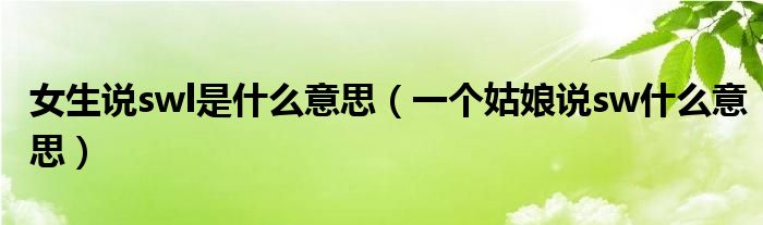 大家好,小生來為大家講解下。女生說swl是什么意思,一個(gè)姑娘說sw什么意思很多人還不知道,現(xiàn)在讓我們一起來看看吧!