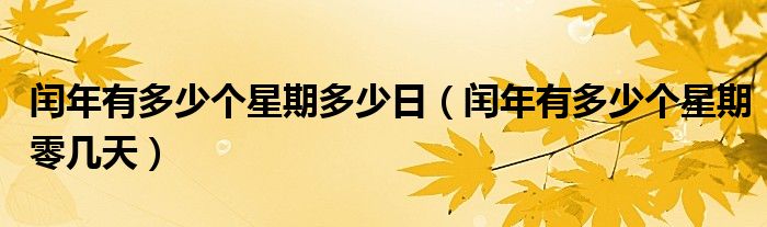 大家好,小生來為大家講解下。閏年有多少個(gè)星期多少日,閏年有多少個(gè)星期零幾天很多人還不知道,現(xiàn)在讓我們一起來看看吧!