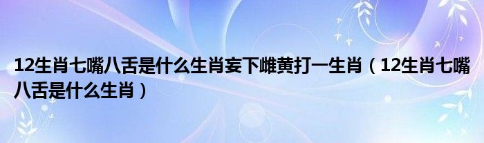 大家好,小生來(lái)為大家講解下。12生肖七嘴八舌是什么生肖妄下雌黃打一生肖,12生肖七嘴八舌是什么生肖很多人還不知道,現(xiàn)在讓我們一起來(lái)看看吧!