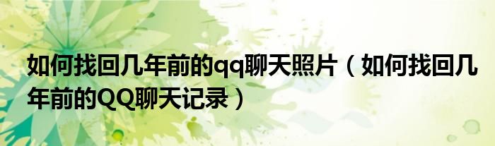 大家好,小生來為大家講解下。如何找回幾年前的qq聊天照片,如何找回幾年前的QQ聊天記錄很多人還不知道,現(xiàn)在讓我們一起來看看吧!