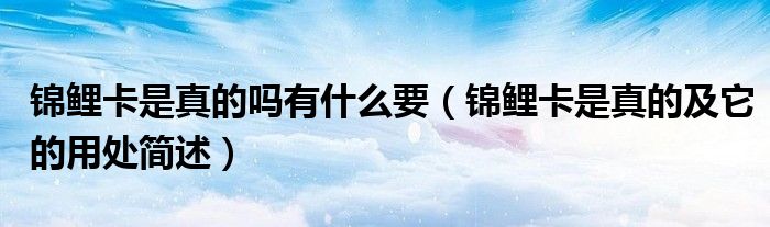 大家好,伊人來(lái)為大家解答以上問(wèn)題。錦鯉卡是真的嗎有什么要,錦鯉卡是真的及它的用處簡(jiǎn)述很多人還不知道,現(xiàn)在讓我們一起來(lái)看看吧!