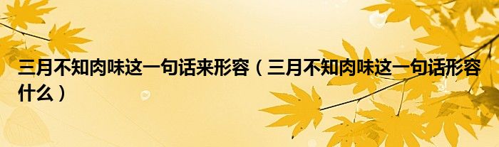 大家好,小生來為大家講解下。三月不知肉味這一句話來形容,三月不知肉味這一句話形容什么很多人還不知道,現(xiàn)在讓我們一起來看看吧!