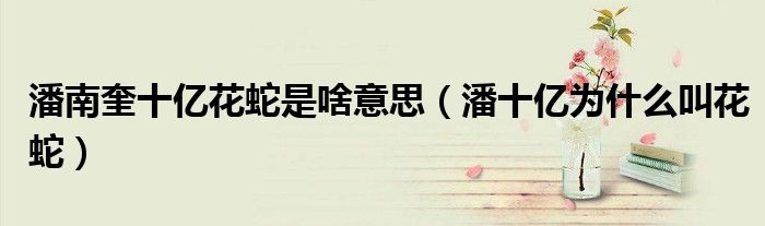 大家好,小生來為大家講解下。潘南奎十億花蛇是啥意思,潘十億為什么叫花蛇很多人還不知道,現(xiàn)在讓我們一起來看看吧!
