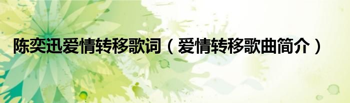 大家好,伊人來(lái)為大家解答以上問(wèn)題。陳奕迅愛(ài)情轉(zhuǎn)移歌詞,愛(ài)情轉(zhuǎn)移歌曲簡(jiǎn)介很多人還不知道,現(xiàn)在讓我們一起來(lái)看看吧!