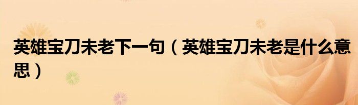 大家好,伊人來為大家解答以上問題。英雄寶刀未老下一句,英雄寶刀未老是什么意思很多人還不知道,現(xiàn)在讓我們一起來看看吧!