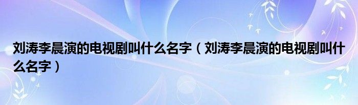 大家好,小生來為大家講解下。劉濤李晨演的電視劇叫什么名字,劉濤李晨演的電視劇叫什么名字很多人還不知道,現(xiàn)在讓我們一起來看看吧!