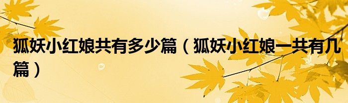 大家好,小生來為大家講解下。狐妖小紅娘共有多少篇,狐妖小紅娘一共有幾篇很多人還不知道,現(xiàn)在讓我們一起來看看吧!