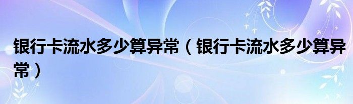 大家好,小生來為大家講解下。銀行卡流水多少算異常,銀行卡流水多少算異常很多人還不知道,現在讓我們一起來看看吧!