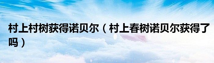 大家好,小生來(lái)為大家講解下。村上村樹(shù)獲得諾貝爾,村上春樹(shù)諾貝爾獲得了嗎很多人還不知道,現(xiàn)在讓我們一起來(lái)看看吧!