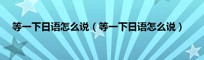 大家好,小生來為大家講解下。等一下日語怎么說,等一下日語怎么說很多人還不知道,現(xiàn)在讓我們一起來看看吧!