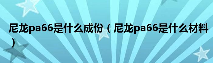 大家好,小生來為大家講解下。尼龍pa66是什么成份,尼龍pa66是什么材料很多人還不知道,現(xiàn)在讓我們一起來看看吧!