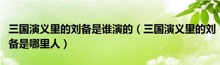 大家好,小生來為大家講解下。三國演義里的劉備是誰演的,三國演義里的劉備是哪里人很多人還不知道,現(xiàn)在讓我們一起來看看吧!