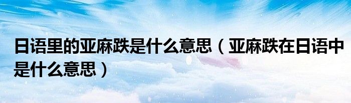 大家好,小生來(lái)為大家講解下。日語(yǔ)里的亞麻跌是什么意思,亞麻跌在日語(yǔ)中是什么意思很多人還不知道,現(xiàn)在讓我們一起來(lái)看看吧!