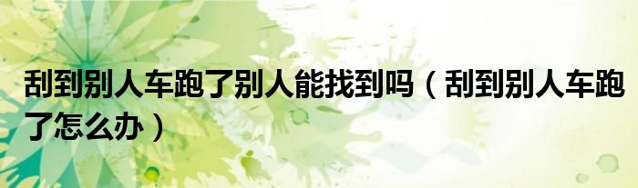 大家好,小生來為大家講解下。刮到別人車跑了別人能找到嗎,刮到別人車跑了怎么辦很多人還不知道,現(xiàn)在讓我們一起來看看吧!