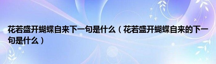 1、“花若盛開,蝶來(lái)兮”的下一句是“你若精彩,蒼天為你安排”。