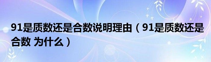 大家好,小生來(lái)為大家講解下。91是質(zhì)數(shù)還是合數(shù)說(shuō)明理由,91是質(zhì)數(shù)還是合數(shù) 為什么很多人還不知道,現(xiàn)在讓我們一起來(lái)看看吧!