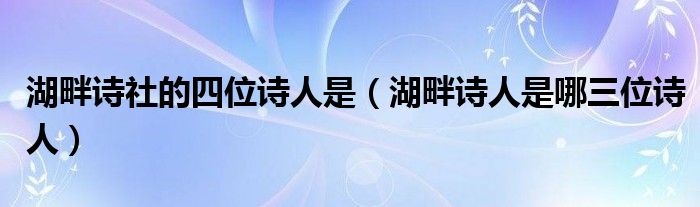 大家好,小生來(lái)為大家講解下。湖畔詩(shī)社的四位詩(shī)人是,湖畔詩(shī)人是哪三位詩(shī)人很多人還不知道,現(xiàn)在讓我們一起來(lái)看看吧!