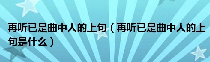 大家好,小生來(lái)為大家講解下。再聽(tīng)已是曲中人的上句,再聽(tīng)已是曲中人的上句是什么很多人還不知道,現(xiàn)在讓我們一起來(lái)看看吧!