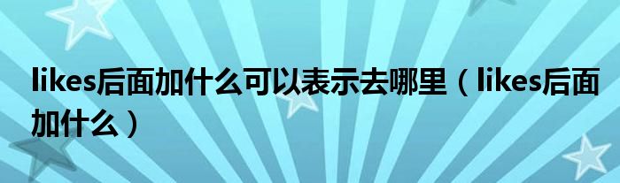 大家好,小生來為大家講解下。likes后面加什么可以表示去哪里,likes后面加什么很多人還不知道,現(xiàn)在讓我們一起來看看吧!