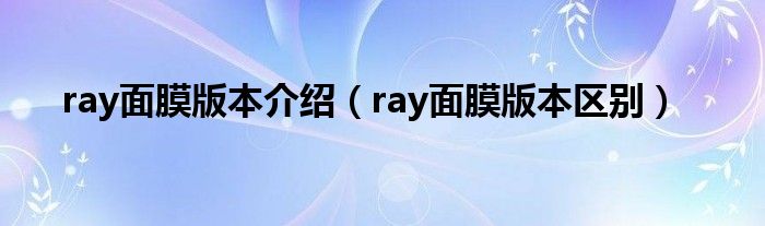 大家好,小生來為大家講解下。ray面膜版本介紹,ray面膜版本區(qū)別很多人還不知道,現(xiàn)在讓我們一起來看看吧!