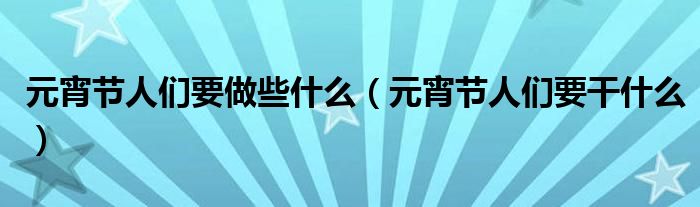大家好,小生來為大家講解下。元宵節(jié)人們要做些什么,元宵節(jié)人們要干什么很多人還不知道,現(xiàn)在讓我們一起來看看吧!