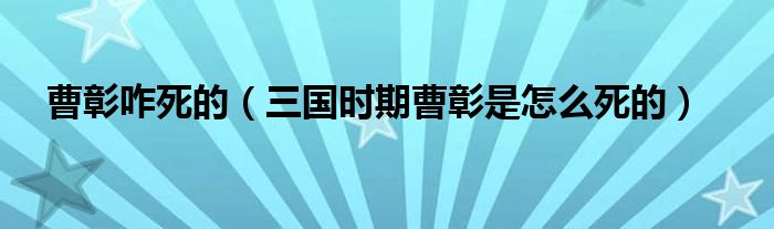 大家好,小生來為大家講解下。曹彰咋死的,三國時期曹彰是怎么死的很多人還不知道,現(xiàn)在讓我們一起來看看吧!