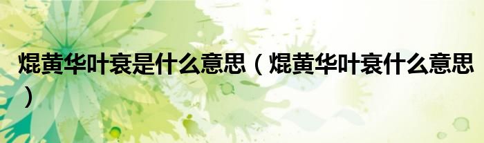 大家好,小生來為大家講解下。焜黃華葉衰是什么意思,焜黃華葉衰什么意思很多人還不知道,現(xiàn)在讓我們一起來看看吧!