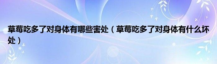 大家好,小生來為大家講解下。草莓吃多了對身體有哪些害處,草莓吃多了對身體有什么壞處很多人還不知道,現(xiàn)在讓我們一起來看看吧!