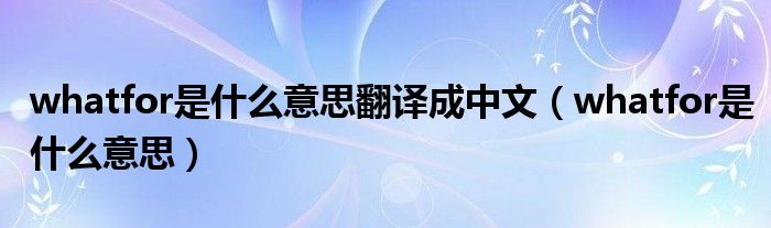 大家好,小生來為大家講解下。whatfor是什么意思翻譯成中文,whatfor是什么意思很多人還不知道,現(xiàn)在讓我們一起來看看吧!