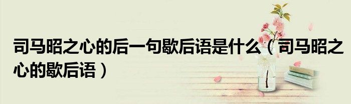 大家好,小生來為大家講解下。司馬昭之心的后一句歇后語是什么,司馬昭之心的歇后語很多人還不知道,現(xiàn)在讓我們一起來看看吧!