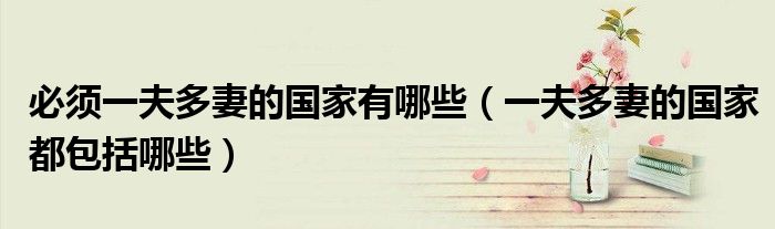 大家好,小生來為大家講解下。必須一夫多妻的國家有哪些,一夫多妻的國家都包括哪些很多人還不知道,現(xiàn)在讓我們一起來看看吧!