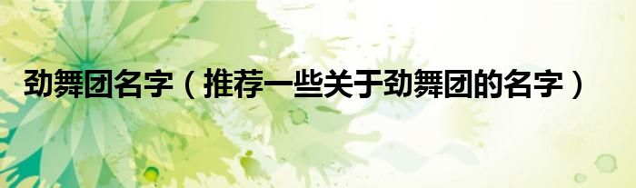 大家好,伊人來為大家解答以上問題。勁舞團(tuán)名字,推薦一些關(guān)于勁舞團(tuán)的名字很多人還不知道,現(xiàn)在讓我們一起來看看吧!