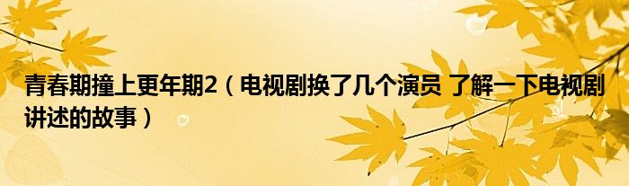 大家好,伊人來為大家解答以上問題。青春期撞上更年期2,電視劇換了幾個(gè)演員 了解一下電視劇講述的故事很多人還不知道,現(xiàn)在讓我們一起來看看吧!
