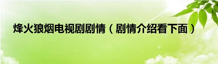 大家好,伊人來為大家解答以上問題。烽火狼煙電視劇劇情,劇情介紹看下面很多人還不知道,現(xiàn)在讓我們一起來看看吧!