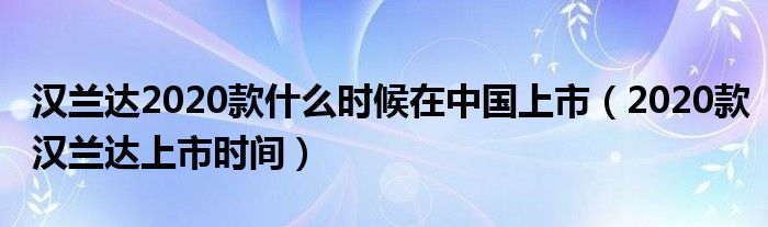 大家好,伊人來為大家解答以上問題。漢蘭達2020款什么時候在中國上市,2020款漢蘭達上市時間很多人還不知道,現(xiàn)在讓我們一起來看看吧!