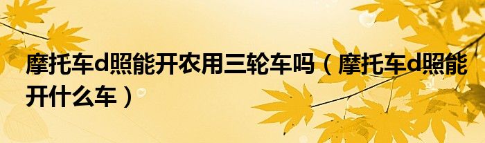 大家好,小生來為大家講解下。摩托車d照能開農(nóng)用三輪車嗎,摩托車d照能開什么車很多人還不知道,現(xiàn)在讓我們一起來看看吧!
