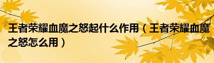大家好,小生來為大家講解下。王者榮耀血魔之怒起什么作用,王者榮耀血魔之怒怎么用很多人還不知道,現(xiàn)在讓我們一起來看看吧!